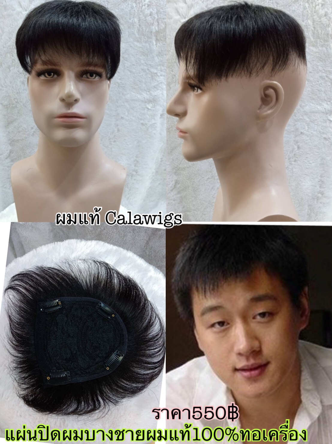 ปิดผมบางผู้ชาย สีดำธรรมชาติ calawigs ปิดผมบางแท้100% ผมคน100% แบบทอมือ แผ่นปิดผมบางชาย
